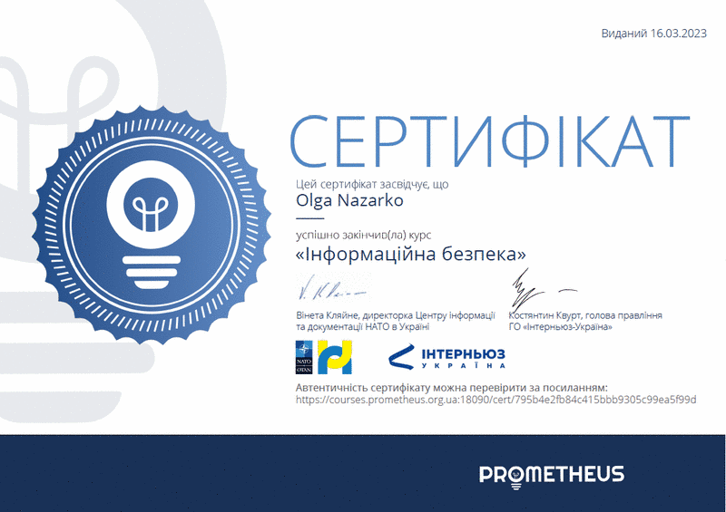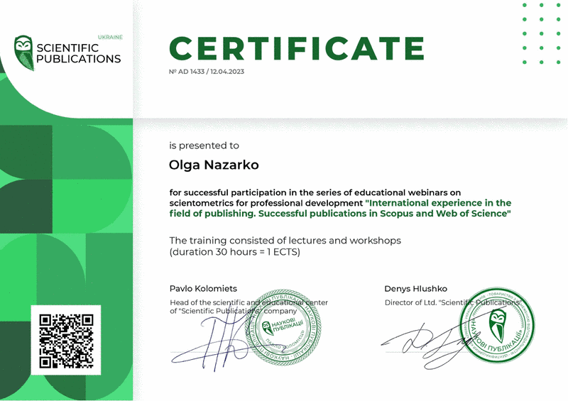 При закінченні кожного заходу були отримані сертифікати: їх здобули проф. Черніков О.В.. доценти Архіпов О.В., Назарько О.О. та викладач Андрієнко С.В.