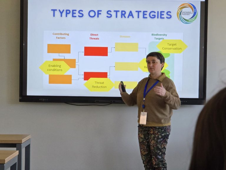 Розробку курсу координувала Анжела Діхте з Університету сталого розвитку міста Еберсвальде у Німеччині, а д-р Вайда Шеревічєне разом з командою Sustainability Hub VILNIUS TECH відповідала за організацію очної частини весняної школи у Вільнюсі. Навчальною метою курсу є розвиток практичних компетенцій в адаптивному управлінні шляхом ознайомлення студентів з концепцією Відкритих стандартів практики охорони природи (Conservation Standards by the CMP) – міжнародно розробленою та визнаною методологією з відкритим кодом, яка використовується в усьому світі для охорони природи та управління конфліктами між людиною та природою.