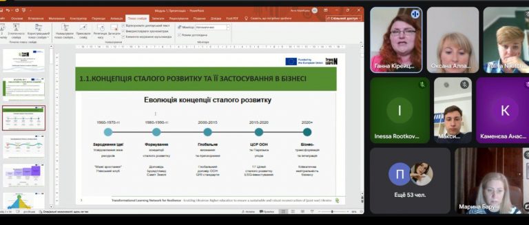 Перша частина (онлайн) – студенти ознайомилися з вісьмома загальними лекційними модулями курсу “Сталі бізнес-моделі”: