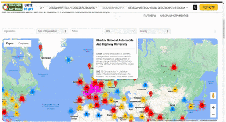 All actions in the field of the SDGs are recorded and visualized on the GLOBAL MAP OF ACTIONS IN THE FIELD OF THE SDGs, which can be filtered by countries, regions, organizations, and KhNAHU now has a location on this map that the whole world can see.