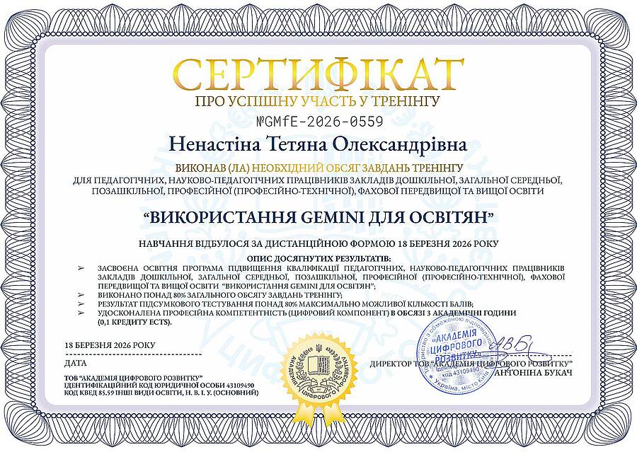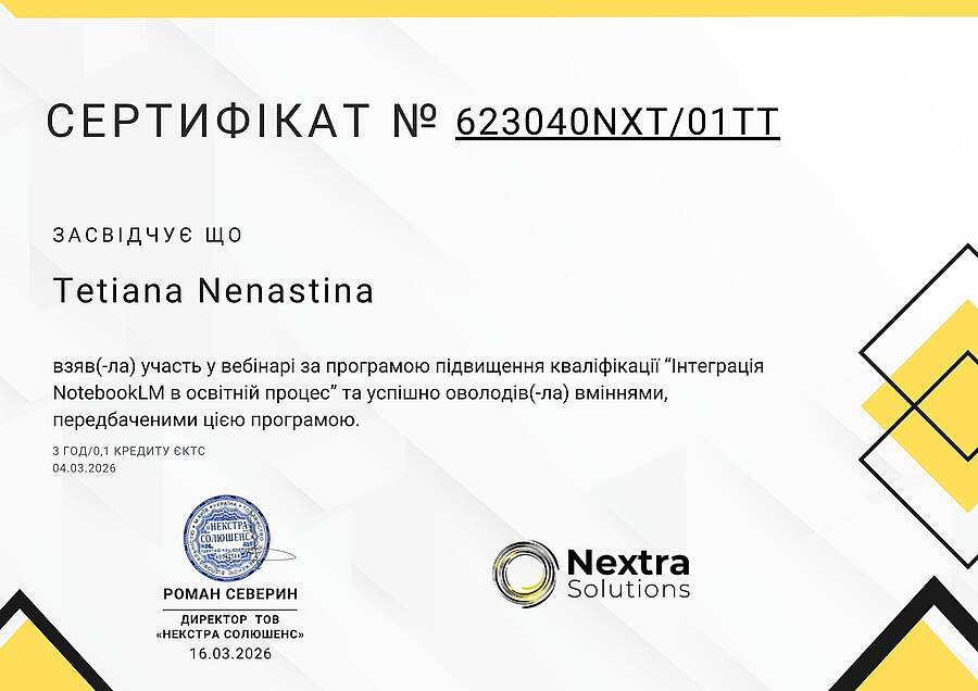 Стажування та підвищення кваліфікації Ненастіної Т.О.