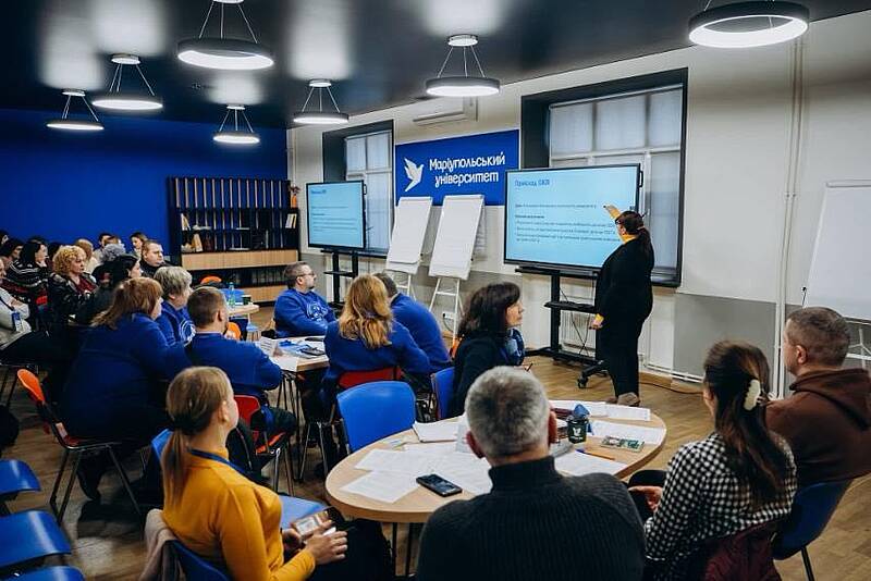 Навчання за Програмою поєднувало різні формати – онлайн-роботу, менторську підтримку, «роботу у полі» та очні модулі і навчальні візити, які відбувалися у м. Києві на базі Маріупольського державного університету. Саме офлайн-формат забезпечив інтенсивну командну взаємодію, обмін досвідом між університетами, роботу з експертами та формування нової управлінської культури.